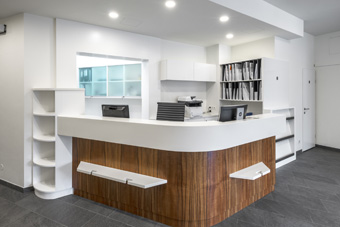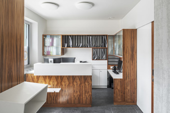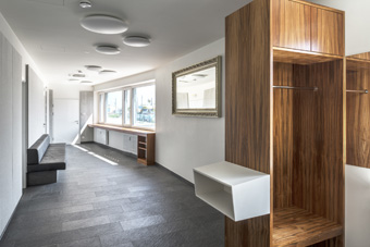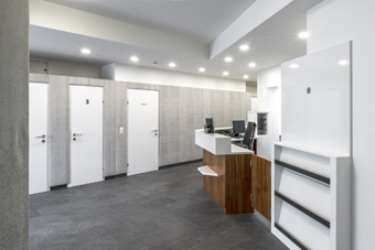 Der Zusammenschluss von Kassen- und Privatordinationen mit einem gemeinsamen Eingang erforderte nicht nur eine funktionsorientierte Planung, sondern ebenso einen kundenorientierten gestalterischen Mehrwert zu bieten. Im Zuge der Errichtung und Ausgestaltung des neuen Traktes, entschloss sich die Auftraggeberin, Dr. Helga Rödler, den Standard des bestehenden Röntgeninstituts auf jenen für PrivatpatientInnen zu heben, wodurch die hochwertige Materialität auch in der „Kassen-Ordi“ umgesetzt werden konnte.